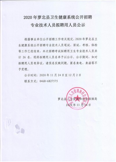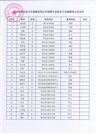 2020年萝北县卫生健康系统公开招聘专业技术人员拟聘用人员