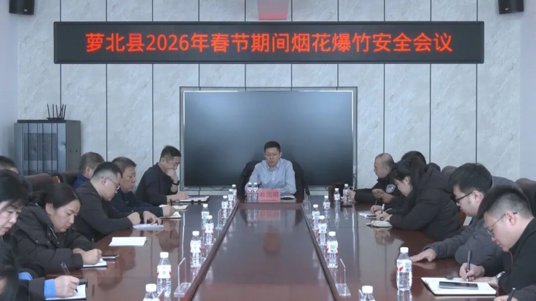 2月19日,我县召开2026年春节期间烟花爆竹安全会议,县委常委、副县长杜国明主持会议并讲话,相关单位负责人参加会议。