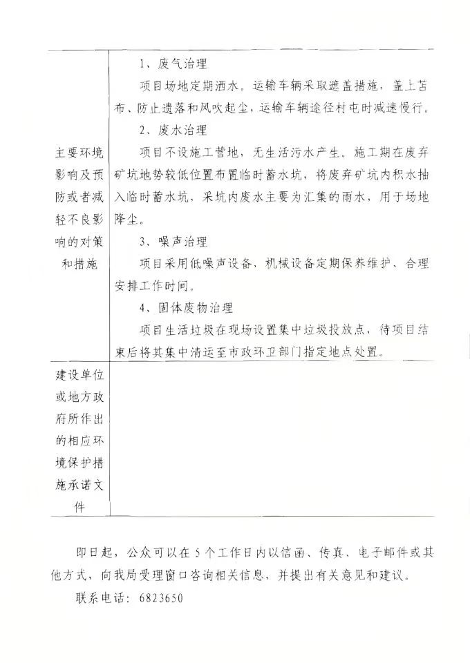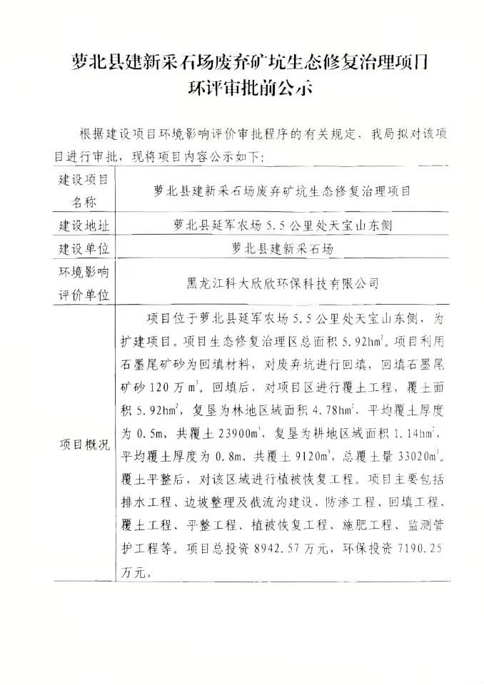 萝北县建新采石场废弃矿坑生态修复治理项目环评审批前公示