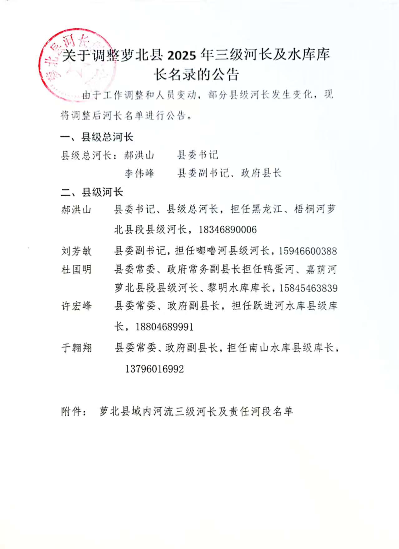 关于调整萝北县2025年三级河长及水库库长名录的公告