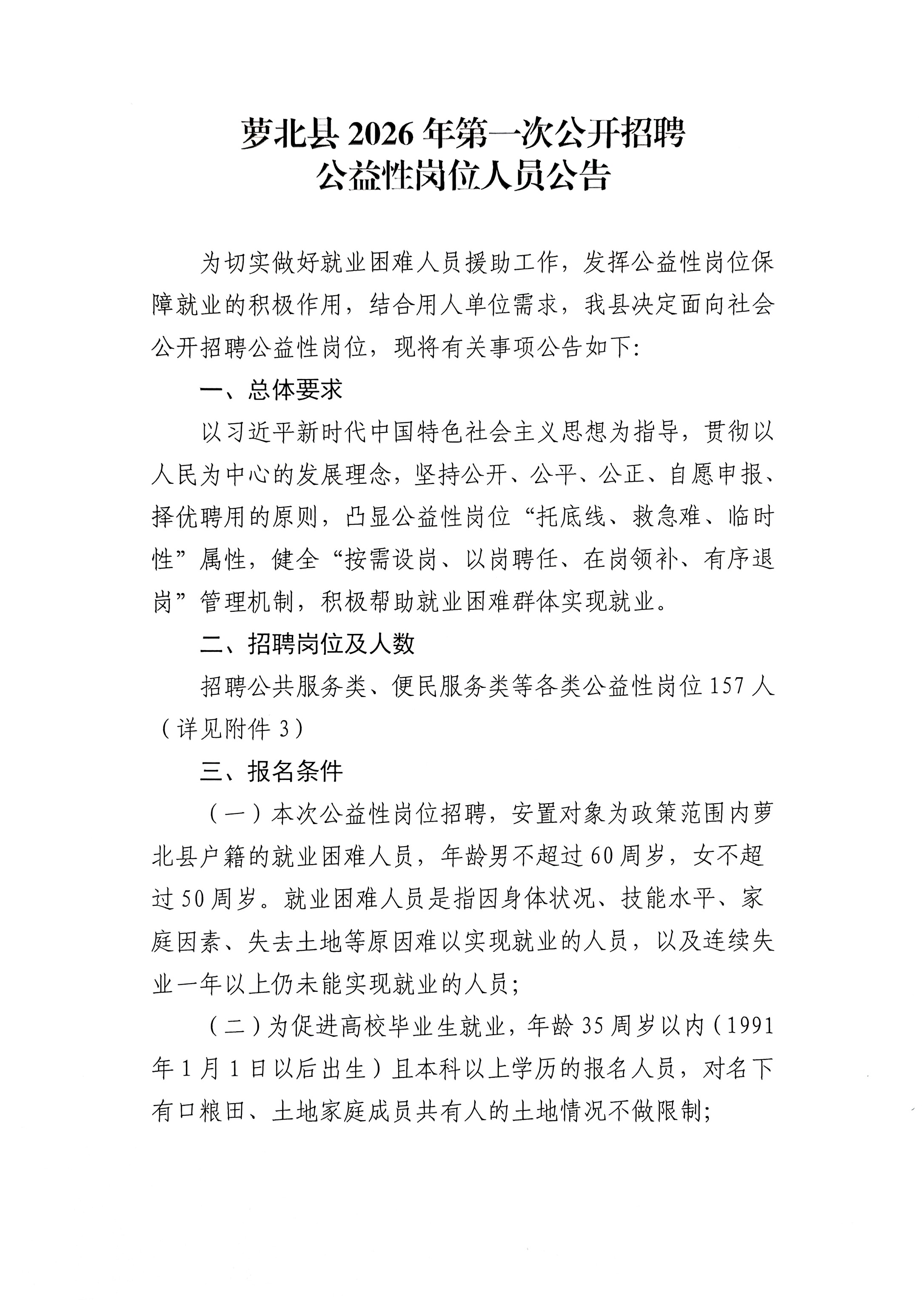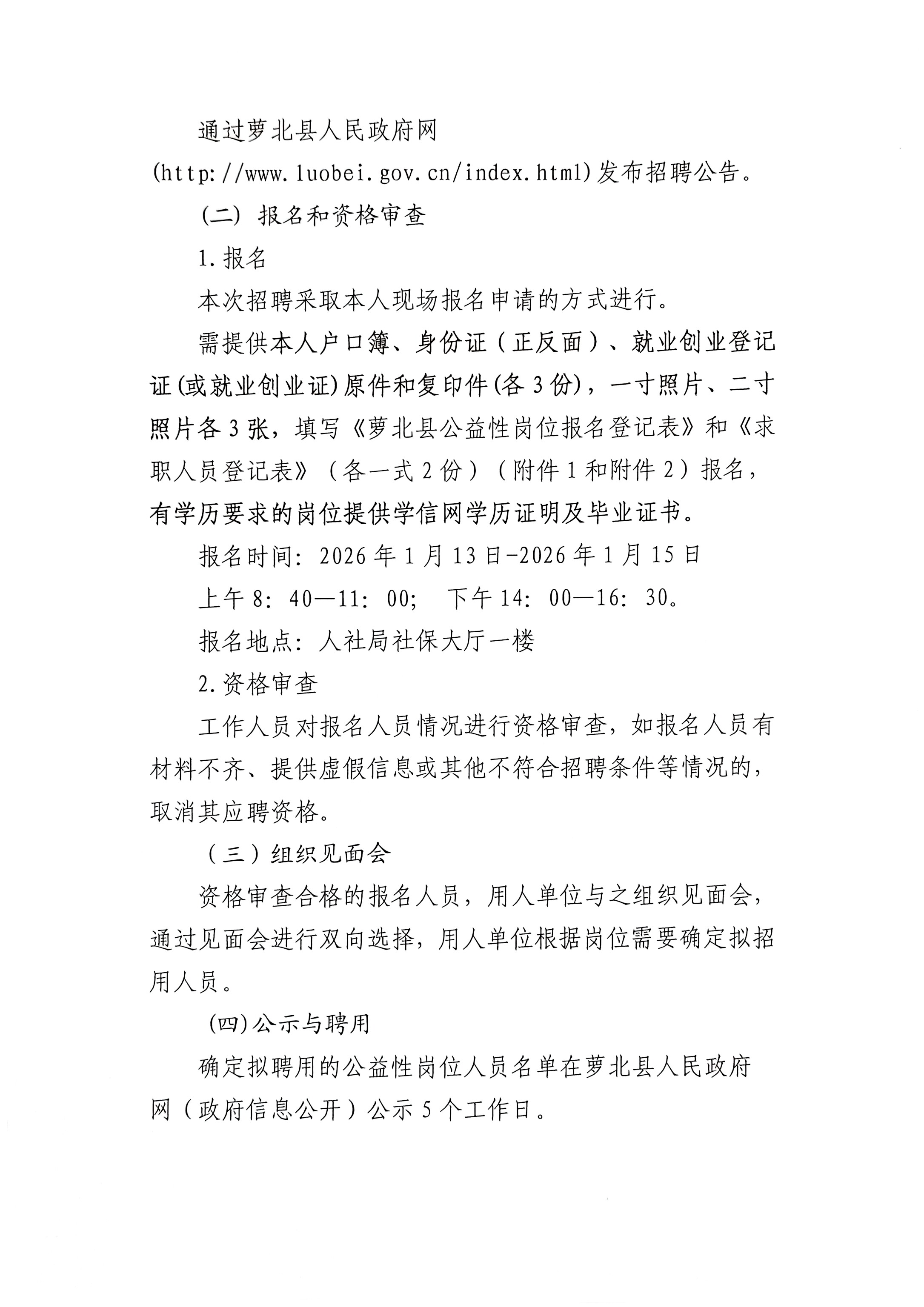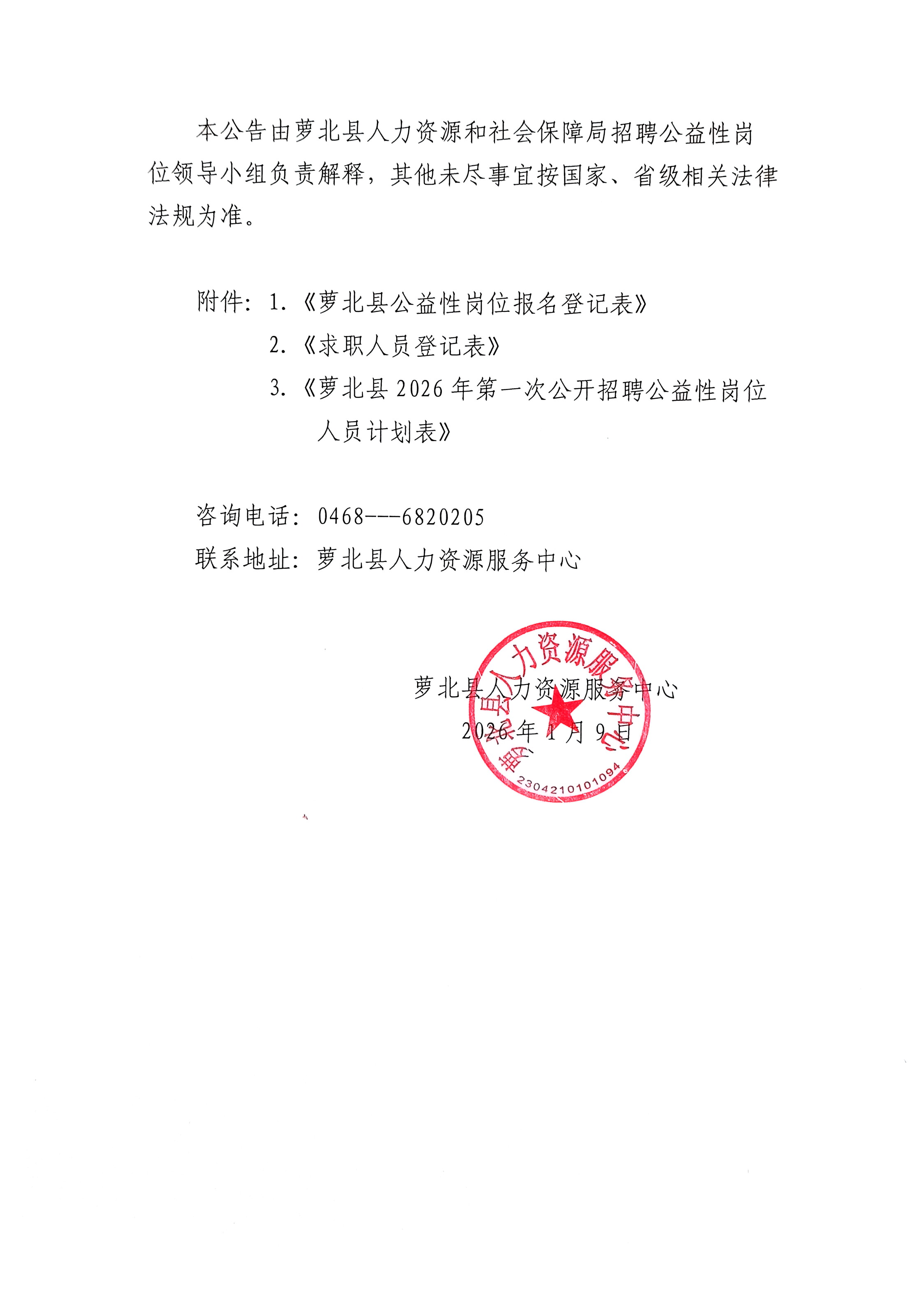 萝北县2026年第一次公开招聘公益性岗位人员公告