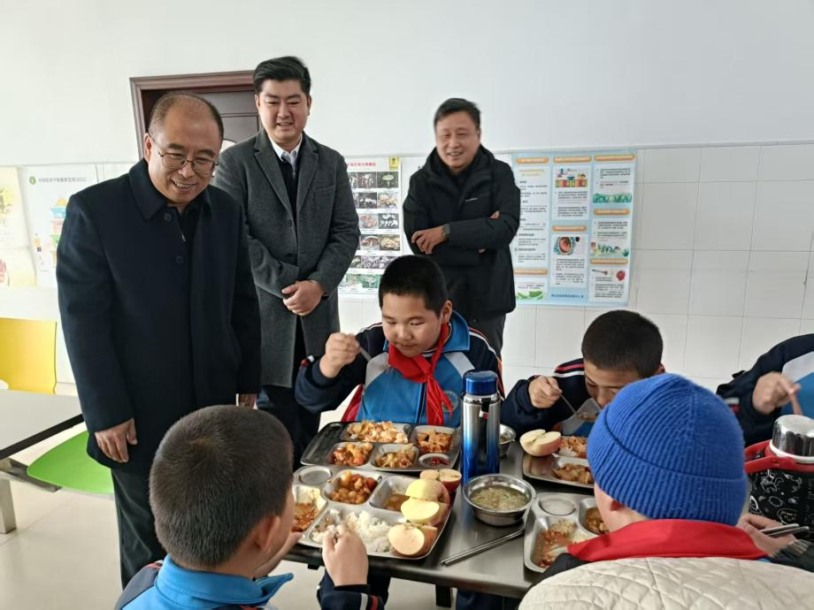 午餐时段,郝洪山与学生们共同就餐,亲切交流饭菜味道是否可口、用餐环境是否舒心,耐心倾听师生的意见建议。他强调,校园餐不是简单的“一餐饭”,而是关乎学生身体健康、成长发育的民生大事,必须严守食品安全底线,在食材管控、加工制作、服务保障等各环节精益求精,同时持续优化营养搭配,根据学生年龄特点和营养需求科学制定食谱,细化配送、就餐等全流程服务,切实守护孩子们“舌尖上的安全”。