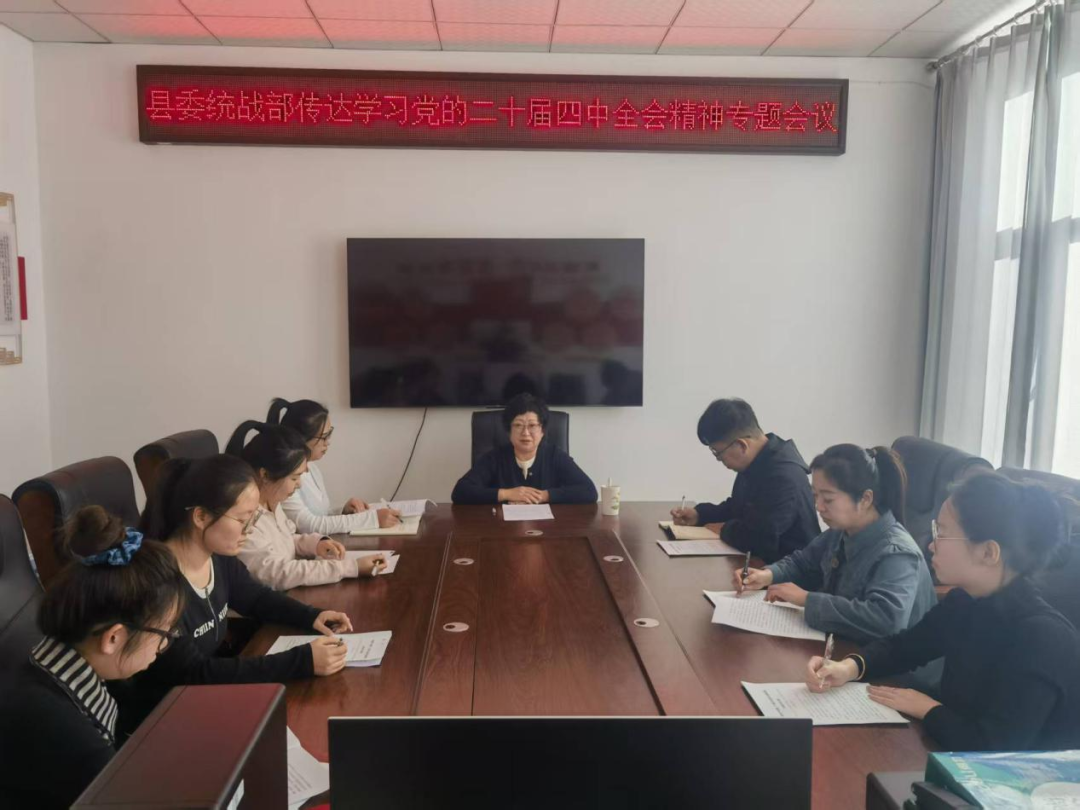 近日,县委统战部开展传达学习党的二十届四中全会精神专题会议,县委常委、统战部部长李晓平主持会议,全体统战干部参加学习。