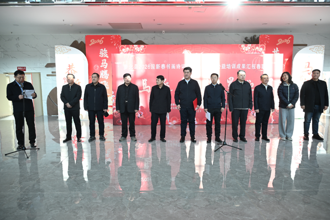 2月3日,由县政协书画院、县文旅局、县文联主办,县文化馆、县书法家协会、县美术家协会、县诗词楹联协会承办的萝北县2026迎春书画诗词精品展暨书法公益培训成果汇报春联展开幕式和颁奖仪式在县文化艺术中心举行。县委副书记任佳伟,县委常委、宣传部部长侯海军参加开幕式。
