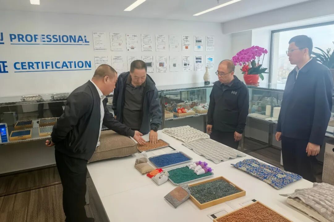 在北京晟伯新材料科技有限公司,郝洪山一行参观了萝北蛇纹玉新材料产品展厅,详细了解蛇纹玉衍生的空气净化、健康寝具、土壤修复等系列产品在负氧离子释放、有害气体降解、重金属吸附等方面的技术优势,对企业依托萝北特色矿产发展高附加值新材料产业的思路给予充分肯定。