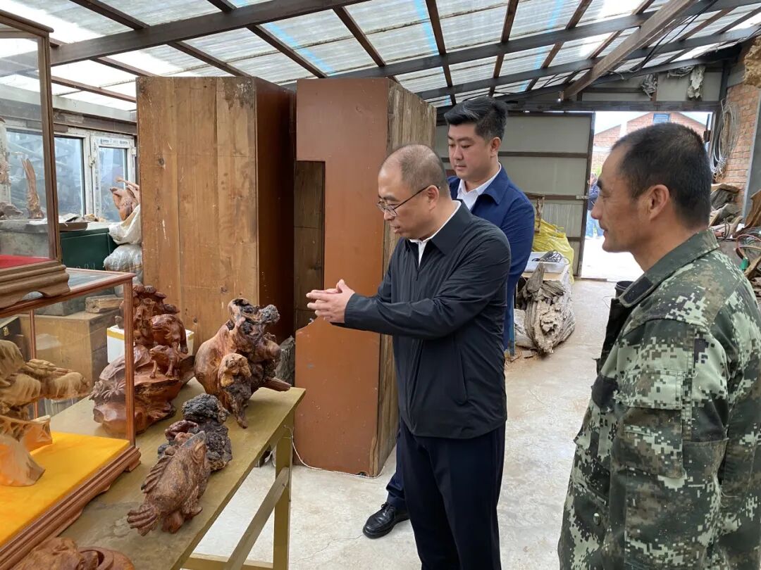 9月16日,县委书记郝洪山,县委副书记任佳伟深入鹤林社区,调研走访益达工艺品有限公司、郁林根艺馆等特色文化企业,谋划产业发展。